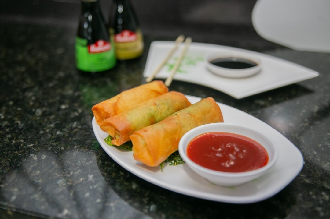 Rolinho Primavera de Queijo, Legumes ou Salmão Grelhado